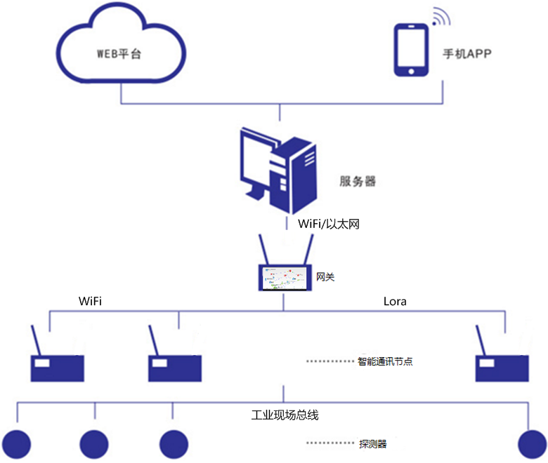 由空氣質(zhì)量傳感器、粉塵傳感器、噪音傳感器、智能通信節(jié)點(diǎn)等組成,具有空氣質(zhì)量監(jiān)測(cè)、揚(yáng)塵監(jiān)測(cè)、噪音監(jiān)測(cè)功能。智能通信節(jié)點(diǎn)與網(wǎng)關(guān)互聯(lián)互通,上報(bào)環(huán)境監(jiān)測(cè)數(shù)據(jù),通過網(wǎng)關(guān)發(fā)布到云平臺(tái)展示。