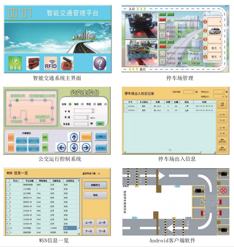 6、城市交通無線傳感網系統(tǒng):城市公交站、泊車位、智能公交車、停車場出入閘機等Zigbee節(jié)點與主控制器Zigbee協(xié)調器構建無線傳感網,實現數據的傳輸與狀態(tài)控制,對整個的智能交通系統(tǒng)進行綜合信息處理與決策。