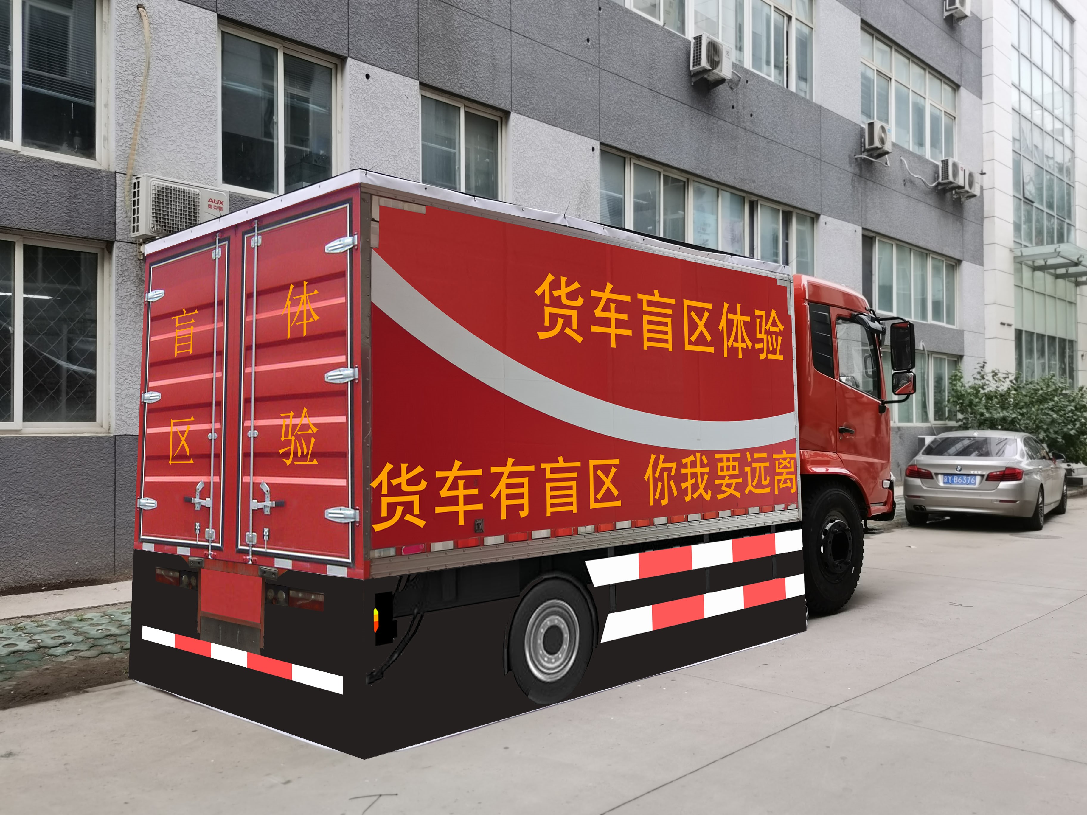 配置:大貨車駕駛室1臺(tái)、模擬仿真貨車車廂1個(gè)、地面盲區(qū)貼布1套。