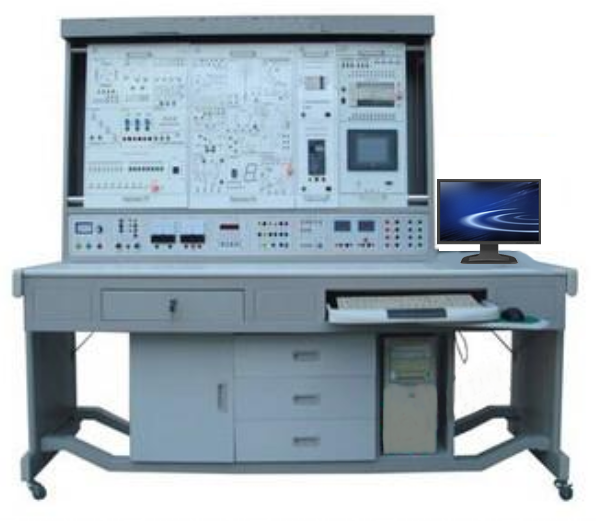 實訓(xùn)裝置由控制屏、實訓(xùn)桌、主機實訓(xùn)組件、實訓(xùn)模塊(含豐富的工業(yè)現(xiàn)場設(shè)備模擬實訓(xùn)對象)、變頻器掛箱、觸摸屏掛箱、交直流電機、總線單元、通信模塊、電機導(dǎo)軌、測速機構(gòu)等組成。