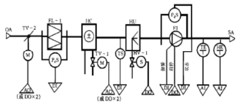 圖3新風(fēng)機組DDC控制系統(tǒng)原理圖