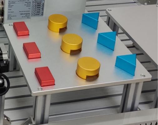 2、流水線模塊:流水線應用場景與工廠實際物流情況相似,可進行機器人點位示教編程與調(diào)試,可根據(jù)學習內(nèi)容不同而設置不同挑選形式,可根據(jù)工件不同采用不同的夾取夾具。