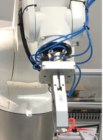 4、工業(yè)機器人末端安裝電磁吸盤,可匹配多種夾具。同時至少配備4種工裝夾具,夾具有專門的工具架安放,每個夾具的負重至少在3kg以上。按照實訓項目的要求可分別配合工業(yè)機器人完成物料夾取、軌跡模擬、寫字繪圖等工作。
