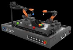 一、產(chǎn)品描述 1、機(jī)器人物流自動(dòng)化工作站由桌面六軸機(jī)器人、桌面四軸機(jī)器人、傳送單元、弧形立體倉(cāng)儲(chǔ)單元、Linux主控、視覺(jué)套件及工作站底座組成。工作站模擬機(jī)器...