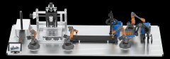 一、產(chǎn)品描述 1、★產(chǎn)線模擬還原汽車(chē)生產(chǎn)過(guò)程中的拼接、焊接、質(zhì)量檢測(cè)、打磨、轉(zhuǎn)運(yùn)等流程(具體流程為1#機(jī)械臂將車(chē)體模型搬運(yùn)至輸送平臺(tái),平臺(tái)將車(chē)模輸送至2#位置...