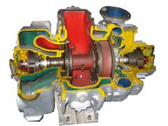 型號:LGJ-WL01 汽車渦輪增壓器實物材料,剖面涂不同顏色,突出結(jié)構(gòu)層次。...