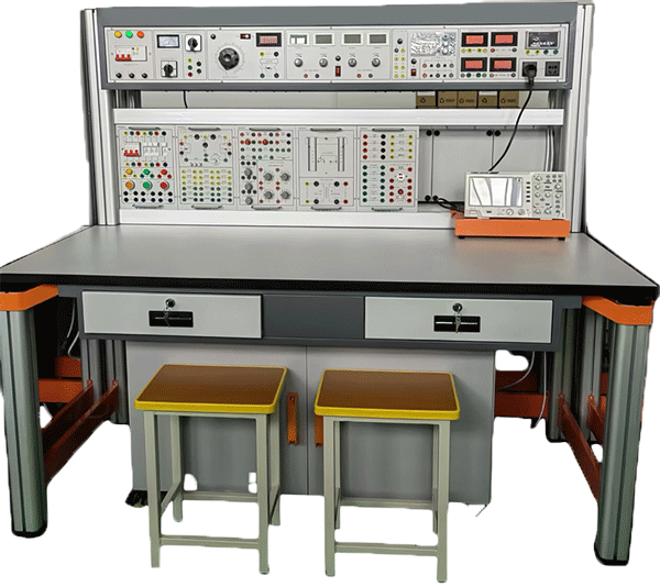 裝置由主機(jī)箱、實(shí)驗(yàn)桌、實(shí)訓(xùn)掛箱、獨(dú)立封裝實(shí)訓(xùn)電路模塊、移動(dòng)矮柜、示波器架、學(xué)生凳等組成。實(shí)訓(xùn)裝置支架與實(shí)訓(xùn)桌可組合、可拆裝。支架與桌腳一體,鋁合金結(jié)構(gòu),實(shí)訓(xùn)掛箱、各實(shí)驗(yàn)?zāi)K可根據(jù)實(shí)驗(yàn)需求自由組合放置。