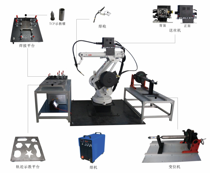 LG-BCHJ02型 工業(yè)焊接機(jī)器人實(shí)訓(xùn)平臺(tái)涵蓋了工業(yè)機(jī)器人本體、機(jī)器人控制柜及示教器、機(jī)器人底座、機(jī)器人專用焊機(jī)及 送絲機(jī)、進(jìn)口機(jī)器人焊槍、示教實(shí)驗(yàn)臺(tái)、工裝卡具平臺(tái)、焊接專用變位機(jī)、電氣控制系統(tǒng)、氣 瓶、空壓機(jī)等硬件組成,經(jīng)過多年的實(shí)際運(yùn)用得到了國內(nèi)普遍認(rèn)可。