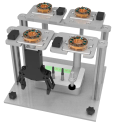 倉儲由高精密電機(jī)驅(qū)動,具有旋轉(zhuǎn)送料功能。具有 8 個貨位,物料層采用卡環(huán)結(jié)構(gòu),方便拆卸,拼裝, 設(shè)有金屬感應(yīng)器和光電傳感器,實時反饋倉儲位置和物料狀態(tài)。