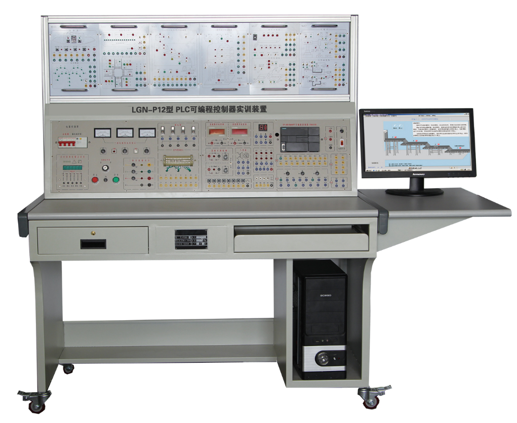 LGN-P12型 可編程控制器實訓裝置集可編程控制器、STEP 7-MicroWIN SMART編程軟件、實訓模塊、實物、電機實操板等于一體。在本裝置上,可直觀地進行PLC的基本指令練習、多個PLC實際應(yīng)用的模擬及實物控制。適合機電設(shè)備安裝與維修、機電技術(shù)應(yīng)用、電氣運行與控制、電氣技術(shù)應(yīng)用、電子電器應(yīng)用與維修等專業(yè) +和非機電類專業(yè)的《可編程控制器技術(shù)》、《電氣及PLC控制技術(shù)》、《PLC及其應(yīng)用》的教學需求。要求適合技工學校、職業(yè)培訓學校、職教中心、鑒定站的PLC實操、技能鑒定考核。