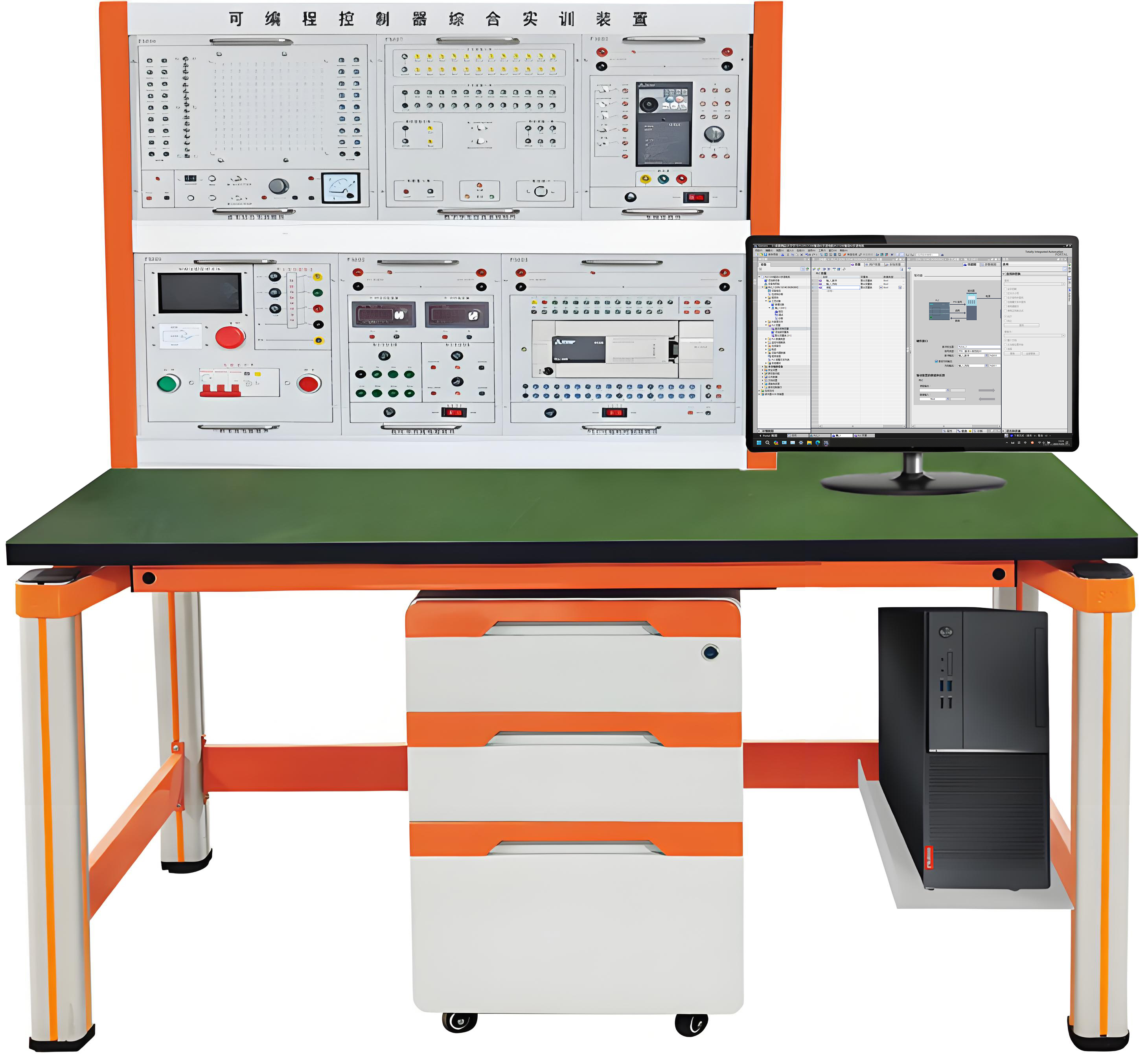 本實訓臺由實訓掛件、實訓桌、實訓儲物柜三大部分組成。