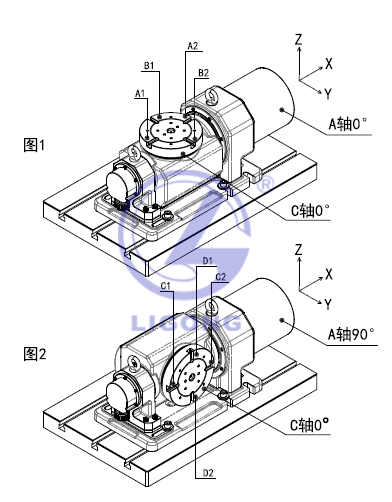 該機(jī)床具有X﹑Y﹑Z三個(gè)直線(xiàn)運(yùn)動(dòng)的數(shù)控坐標(biāo)軸和A、C二個(gè)旋轉(zhuǎn)運(yùn)動(dòng)的數(shù)控坐標(biāo)軸, 可實(shí)現(xiàn)五軸聯(lián)動(dòng)。各坐標(biāo)軸可自動(dòng)定位,工件在一次裝夾后,可自動(dòng)完成銑﹑鉆﹑鏜﹑鉸等多種工序的加工。