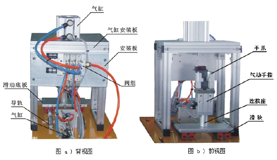 選用該裝置配置的單出桿氣缸、單出雙桿氣缸、旋轉(zhuǎn)氣缸等氣動執(zhí)行元件和單控電磁換向閥、雙控電磁換向閥和磁性開關(guān)等氣動控制元件,可完成下列氣動技術(shù)的工作任務(wù):