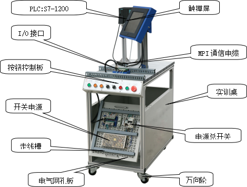 (11)電氣網(wǎng)孔板:主要安裝PLC主機(jī)模塊、空氣開關(guān)、開關(guān)電源、I/O接口板、各種接線端子等。
