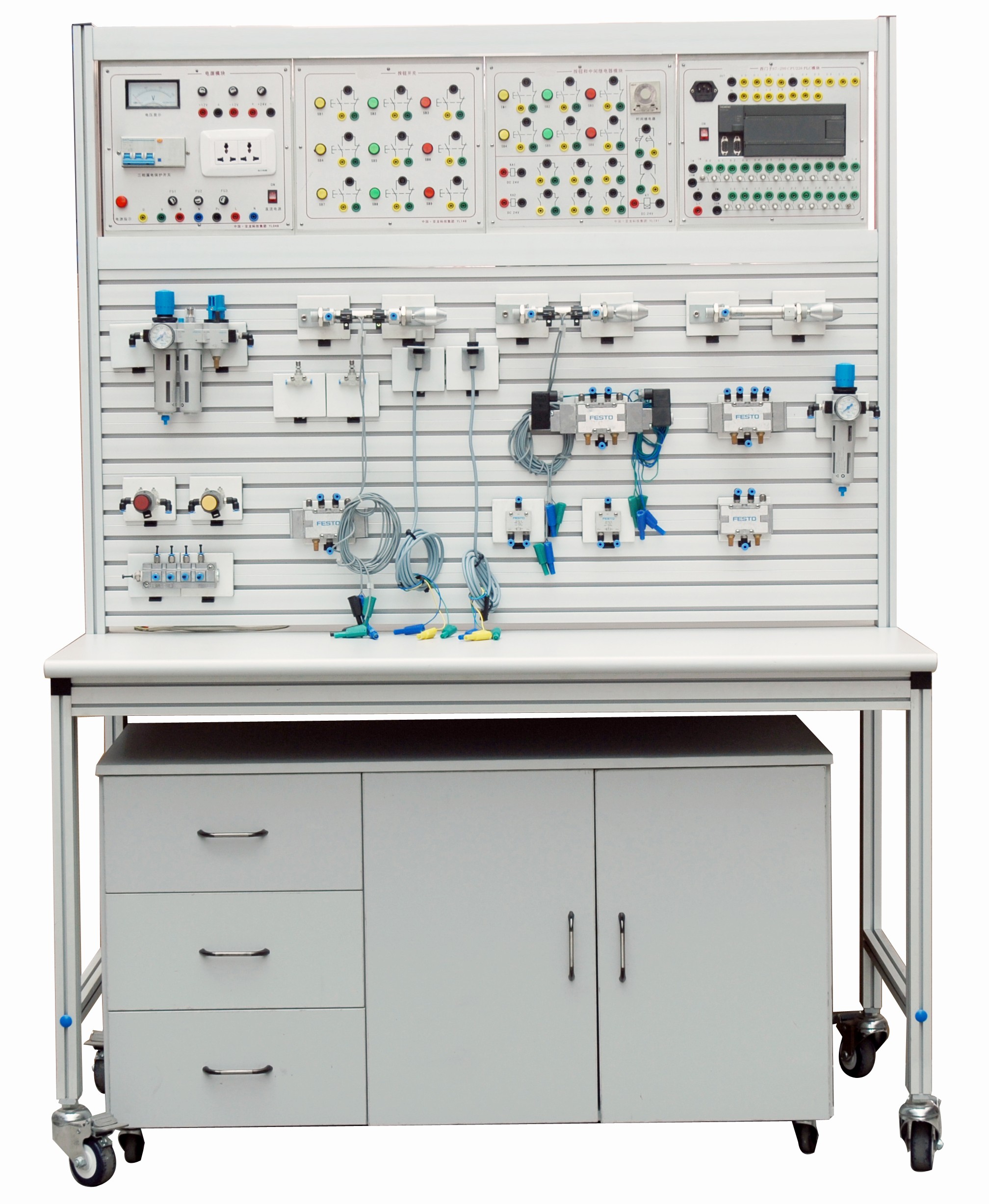 LG-LQD02型 雙面氣動(dòng)綜合實(shí)訓(xùn)臺(tái)具備培訓(xùn)所需要的很多功能,工作面積大,電器元件單獨(dú)擺放,電源系統(tǒng)與實(shí)訓(xùn)臺(tái)融為一體,帶有存儲(chǔ)元件區(qū)域,可以存儲(chǔ)練習(xí)中不需要的元件,也可以準(zhǔn)備練習(xí)所需要的元件。雙面氣動(dòng)綜合實(shí)訓(xùn)臺(tái)完全能滿足氣動(dòng)和電氣氣動(dòng)的教學(xué)培訓(xùn),并有拓展的空間,完整組裝。