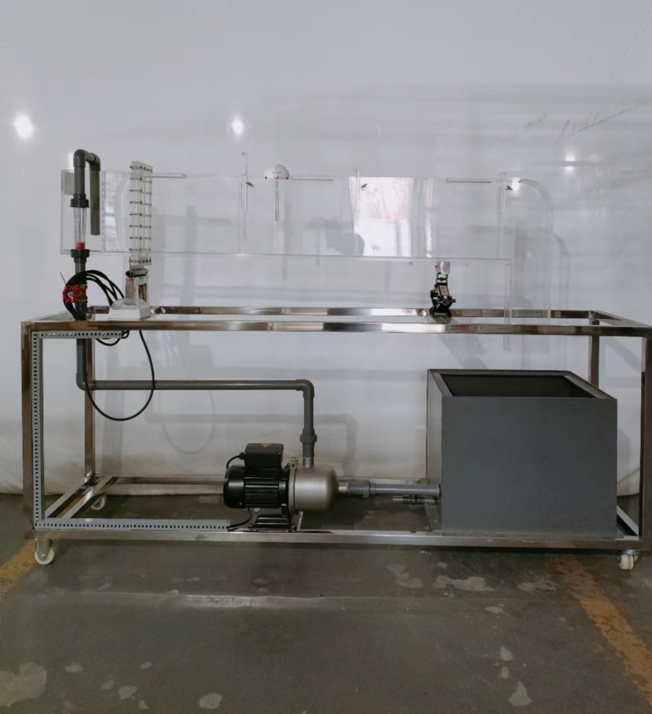 4、操縱升降機構(gòu),至所需的高程讀數(shù),使槽底坡度觀察槽中臨界流(均勻流)時的水面曲線。然后插入閘板2,觀察閘前和閘后出現(xiàn)的型水面曲線,并將曲線繪于記錄紙上。