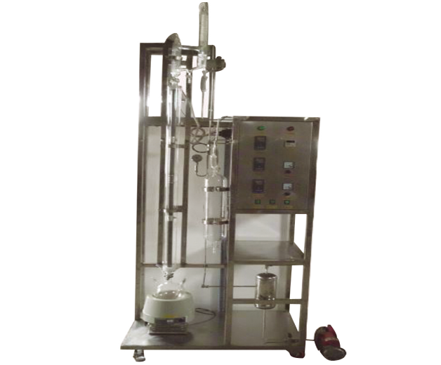 玻璃精餾塔、冷凝器、再沸器、溫度控制儀、溫度顯示儀、壓力表、流量計、真空系統(tǒng)、不銹鋼框架、控制屏。