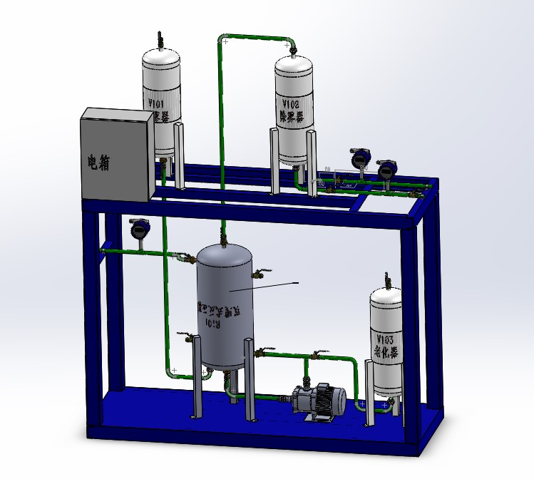 一、裝置特色 整套裝置由鋼制安裝框架、反應器、冷凝器、輸送泵、仿真儀表、就地計算機操作臺、就地智能儀表控制上位監(jiān)控軟件、外置配套設備等組成,工藝路線簡...