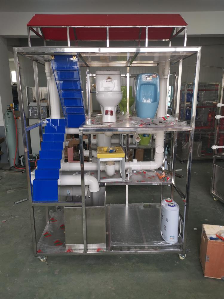 2、生活給排水演示及實(shí)訓(xùn)系統(tǒng)由鍋爐及循環(huán)泵實(shí)現(xiàn)熱循環(huán)演示。有機(jī)玻璃洗澡間包括:、浴缸1套、洗臉盤1套、大便器1套、配水箱1只、水泵1臺(tái)、樓梯、連接管道和球閥、不銹鋼支架等組成。