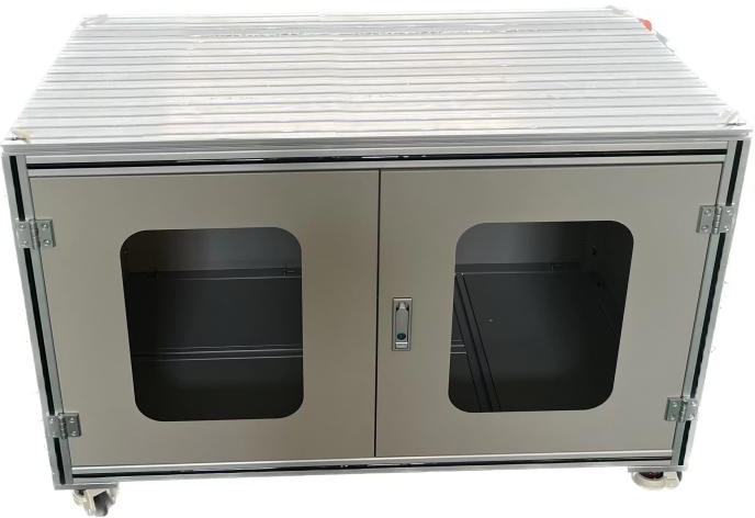 (1)國(guó)標(biāo)40*40mm工業(yè)鋁型材搭建,柜體及門(mén)板采用鈑金表面噴塑處理,帶腳輪、腳杯;